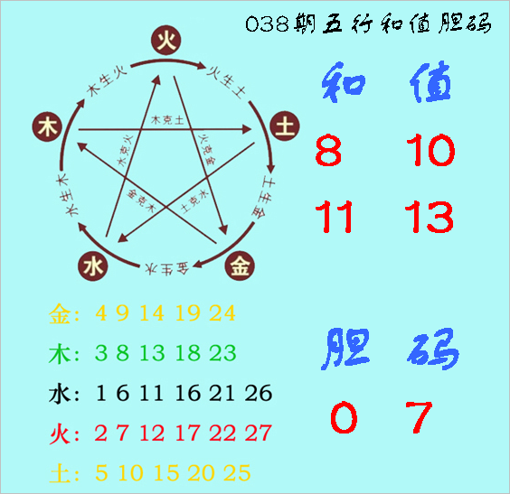 皇冠体育信用盘 福彩3D第2023038期神算天五行和值胆码图